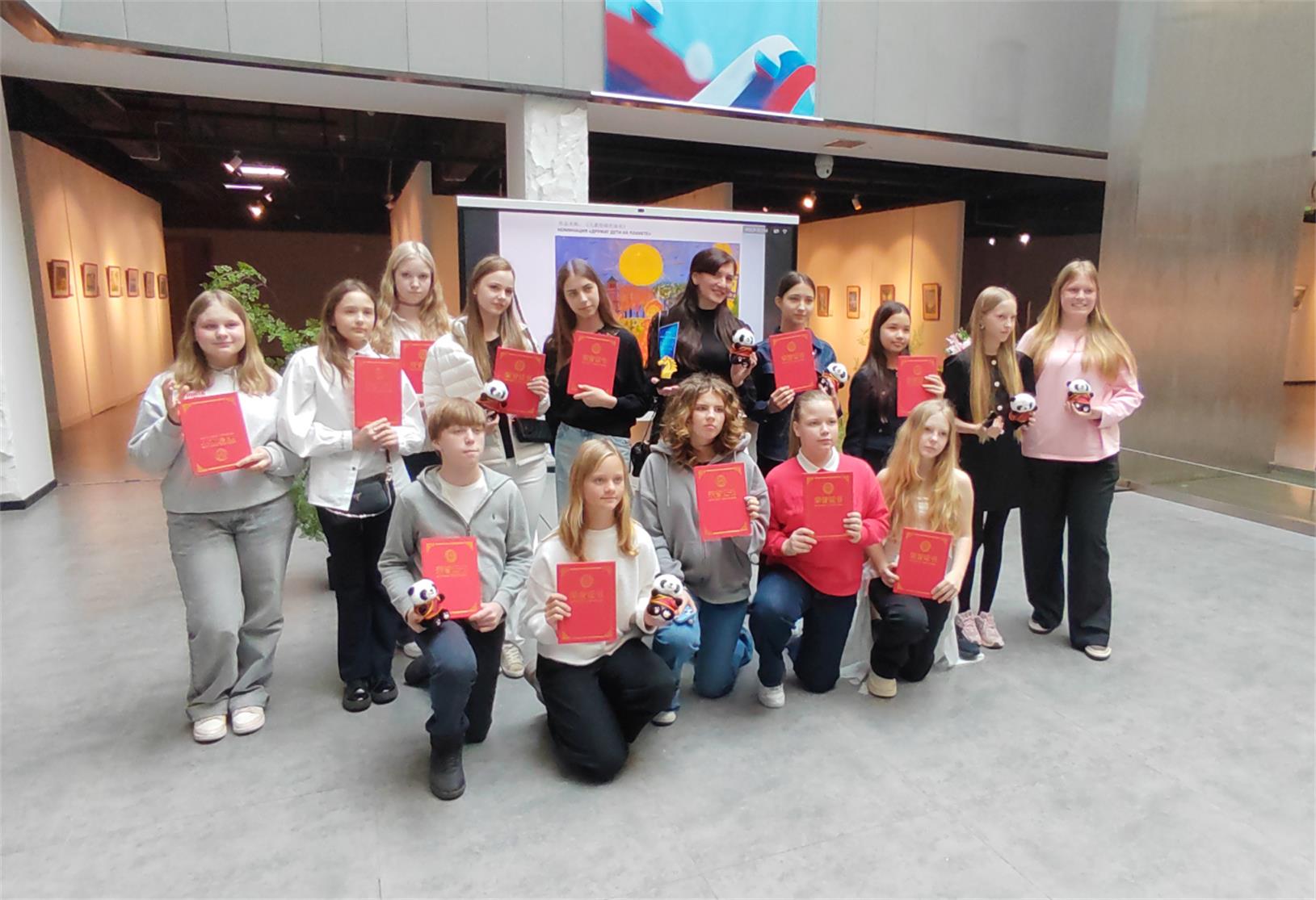 在随后的文化交流环节中,中俄青少年共同开展了手工DIY绘画中国风扇子体验活动,一笔一画尽显巧思,在创作中切身感受中国传统文化的博大精深与美学韵味。歌舞表演环节中,极具东方古韵的舞蹈以优美的舞姿和饱满的情感深深打动了现场观众。开幕式后,中俄青少年共同前往吉林省美术馆观摩美术作品,评审团评奖并现场颁奖。