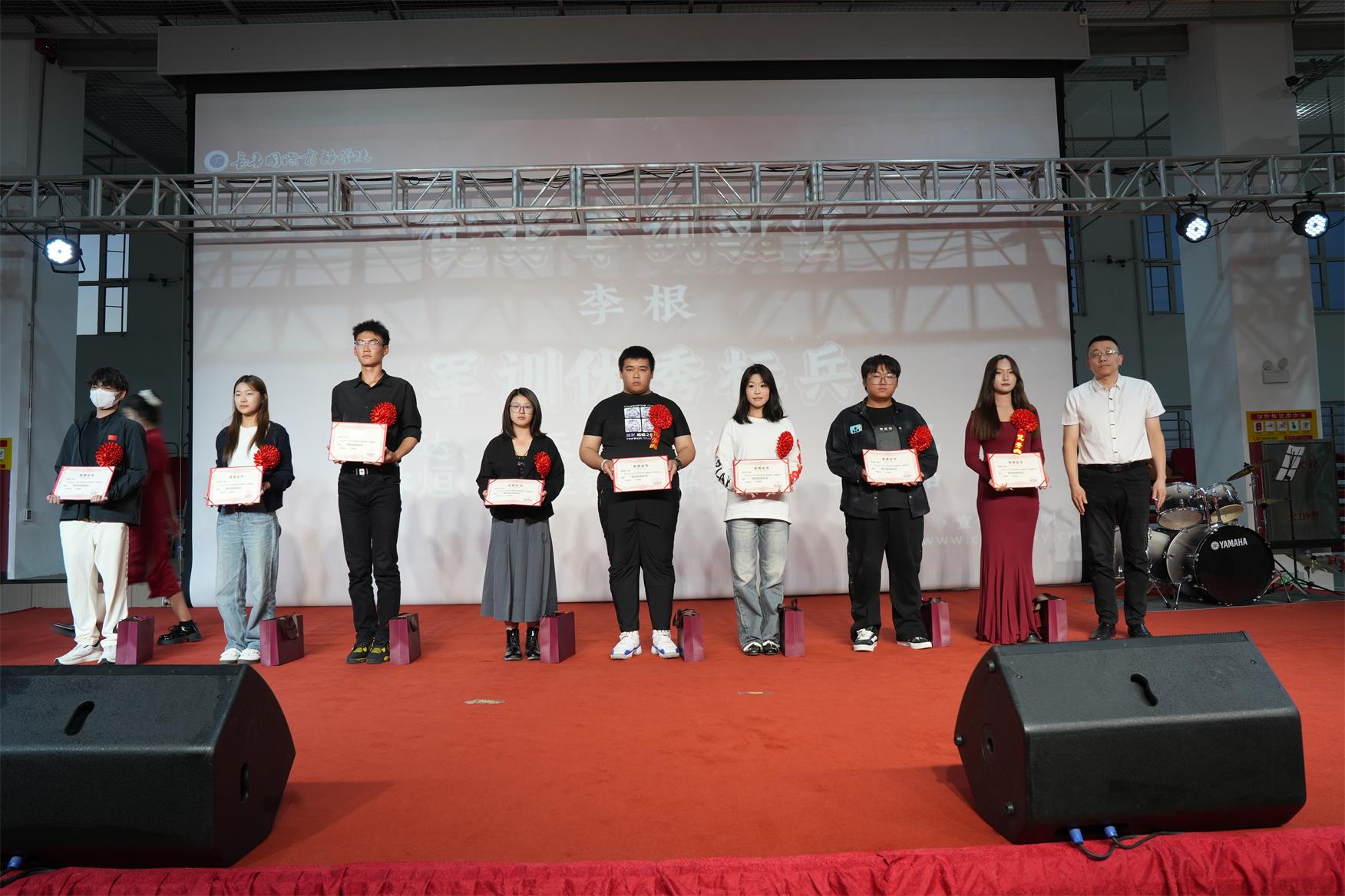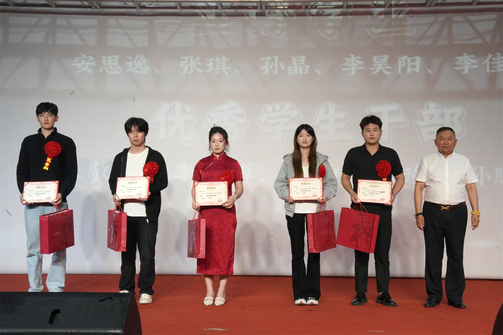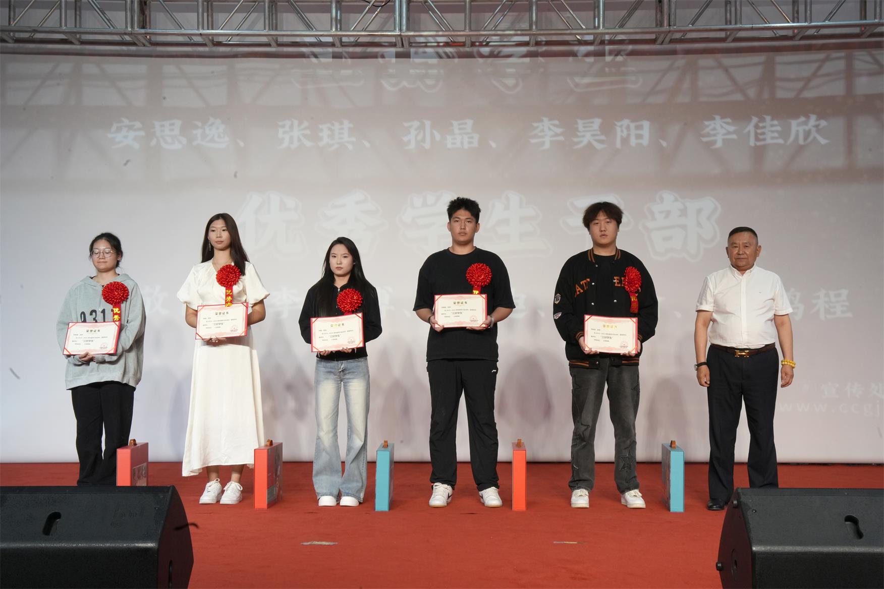 学院各位领导分别对 优 秀 教师、先进工作者、三好学生、 优 秀 学生干部、 优 秀 寝室干部、 优 秀 团支书、特殊贡献奖、 优 秀 军训教官、 优 秀 寝室、军训 优 秀 标兵、军训 优 秀 内务标兵等获奖师生颁发证书、奖金及礼品。