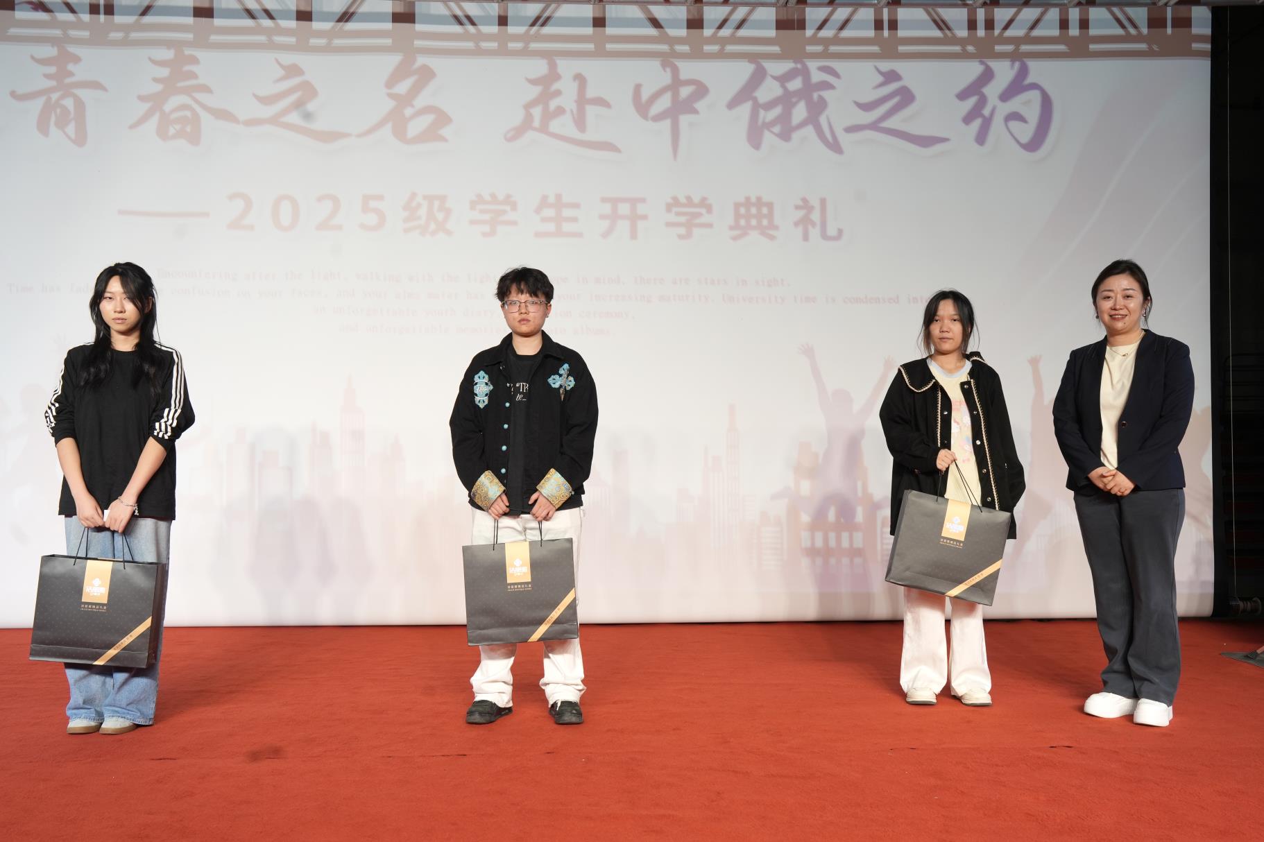 同学们手握的录取通知书,就是一张以‘青春’为名,奔赴一场‘中俄之约’的邀请函。在当前全球格局深刻变革的时代背景下,中俄新时代 全 面 战略协作伙伴关系持续高水平发展,为精通两国语言、熟悉双边商贸规则、兼具国际视野与家国情怀的复合型人才提供了前所未有的历史机遇。一要“根植华夏,胸怀天下”,在深入学习国际商务知识的同时,筑牢中国文化根基,讲好中国故事;二要“融通中外,敢为人先”,充分利用学院优质的中俄合作资源,努力成为连接中俄、沟通 世 界 的桥梁与使者;三要“知行合一,砥砺品格”,在实践中锤炼真本领,在挑战中培养坚韧不拔的意志,不负青春,不负时代。