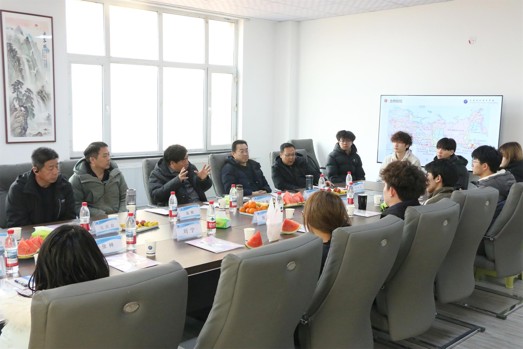 考察活动在友好而热烈的氛围中拉开帷幕。会上,长春国际商务学院张院长首先代表学院对河北代表团领导的到来表示诚挚欢迎,并就学院的基本概况、发展历程、办学理念及国际化特色进行了简要介绍。随后,杨副院长为代表团详细讲解了我院与俄罗斯、白俄罗斯知名高校合作开展的本硕连读项目,重点介绍了项目的培养模式、课程体系、国际交流平台及学位授予情况,充分展示了我院在国际教育合作方面的丰硕成果与独特优势。