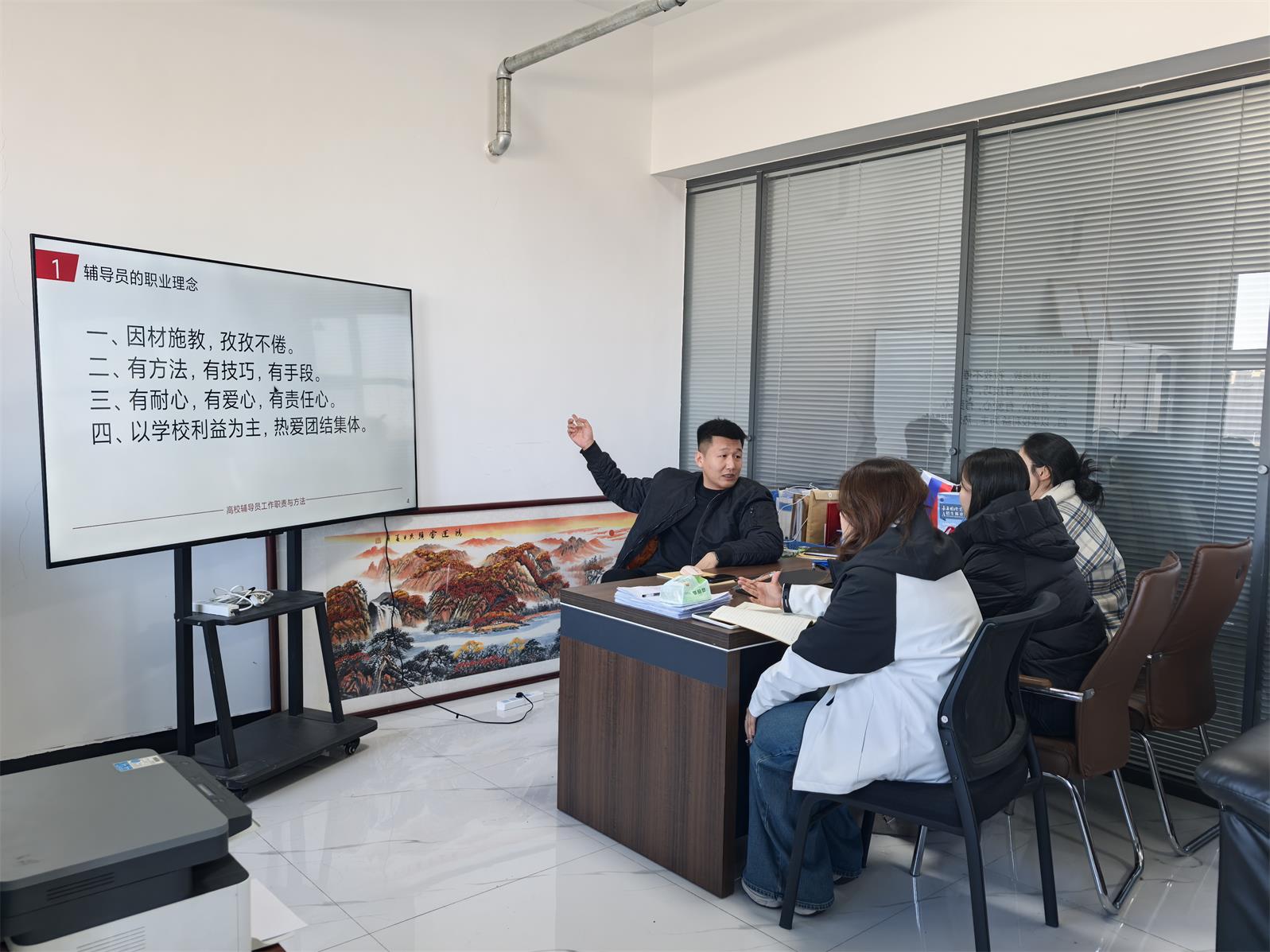 他围绕“如何成为一名******的助理辅导员”这一核心主题,杨处长从角色定位、职责明晰、工作方法与个人成长四个维度进行了系统而深入的阐述。整场培训内容丰富、重点突出、指导性强。与会助理辅导员全神贯注,认真记录,并就关心的问题与杨处长进行了互动交流。