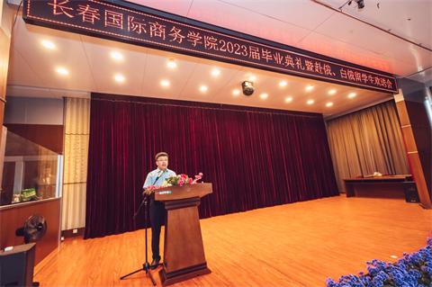 长春国际商务学院院长张雷首先致辞。他对完成国内阶段的学习任务,即将转段赴国外留学的同学们表示祝贺。张院长饱含深情地回忆了同学们入校以来的点点滴滴,肯定了同学们的收获和成长。激励毕业生在今后的学习和工作中,把长春国际商务学院的校训牢记心中,用自己的实际行动去诠释商院校训的意蕴,真正做到“明德笃学”与“知行合一”相结合。张院长激励同学们面对困难挫折要撑得住、关键时刻要挺得住、风险挑战要扛得住,为推动中俄、中白的友谊,贡献自己的正能量!