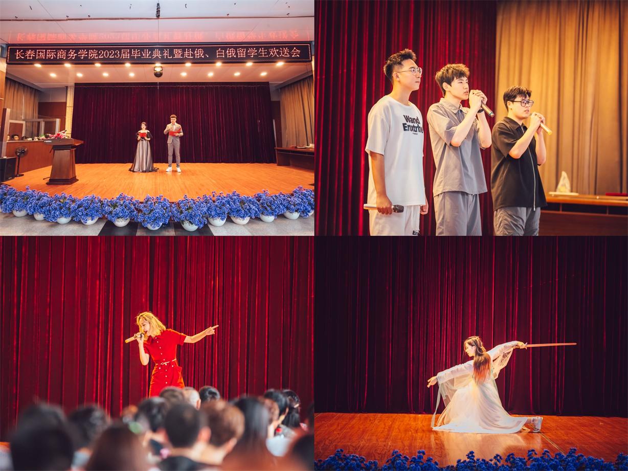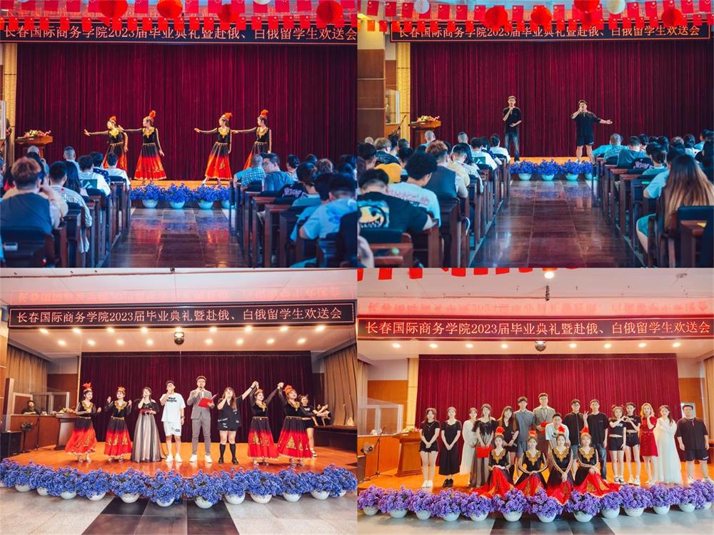 2023年7月2日下午1:30,长春国际商务学院全体师生齐聚三楼会议室,隆重举行2023届毕业典礼暨赴俄罗斯、白俄罗斯留学学生欢送会。集团董事长李雪源、副董事长李求实、张世洋以及全体师生出席欢送会。