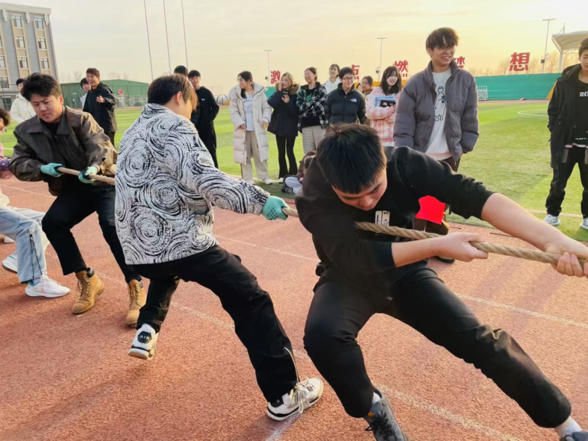 冬日柔和的斜阳映射着每个同学的斗志昂扬,无论是整装待发、跃跃欲试的参赛者们,还是观赛助阵的同学们,都展现出了独属学生们的自信和青春热情!比赛中不少队伍展示了精心策划的战术,如何利用体重分配、力量发挥和节奏控制来取得优势。尽管面临强大的对手,所有参赛队员都展现出了不屈不挠的精神,即使在落后的情况下也绝不放弃。观众席上的加油声此起彼伏,为参赛队员提供了巨大的精神支持,使得比赛更加激动人心。