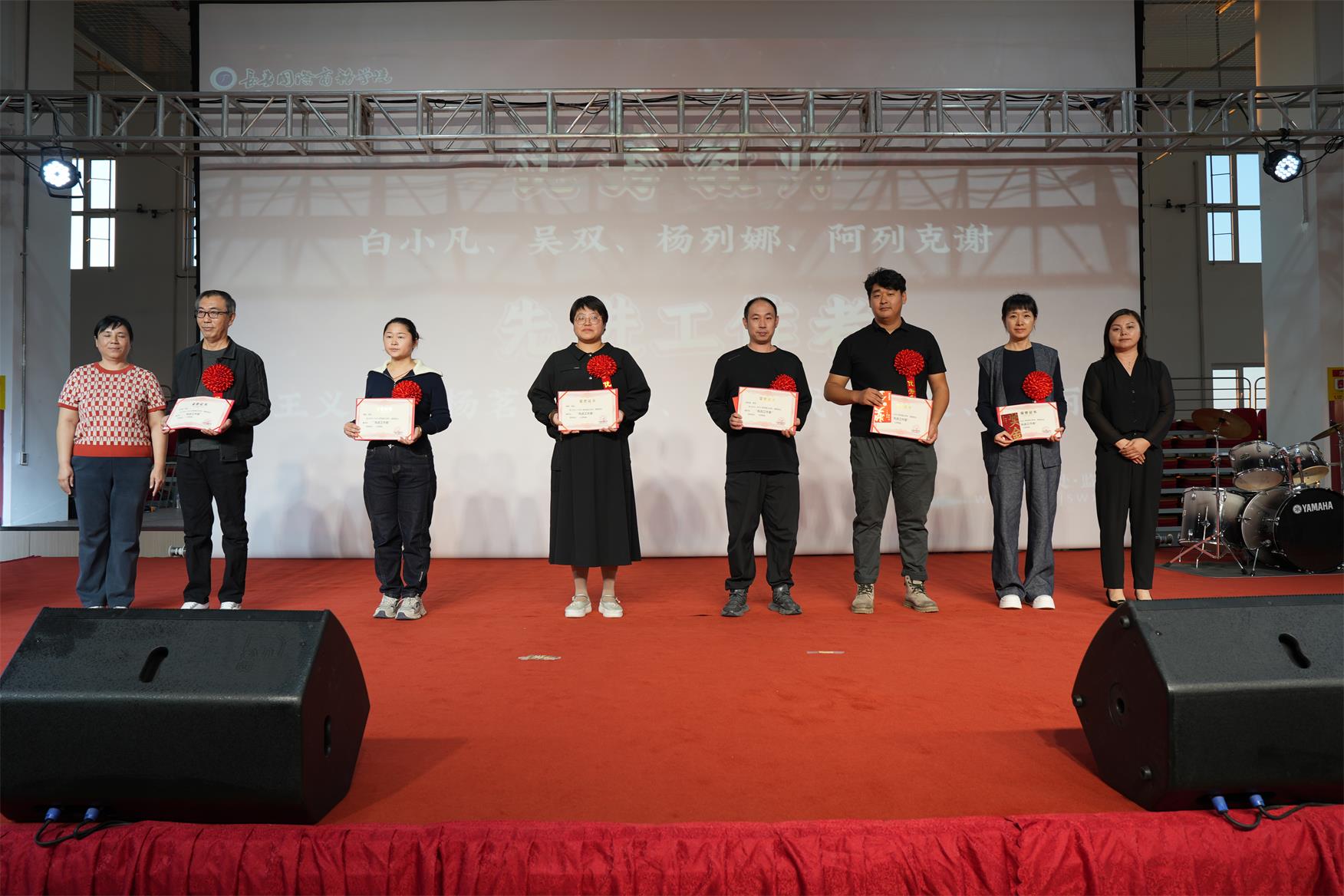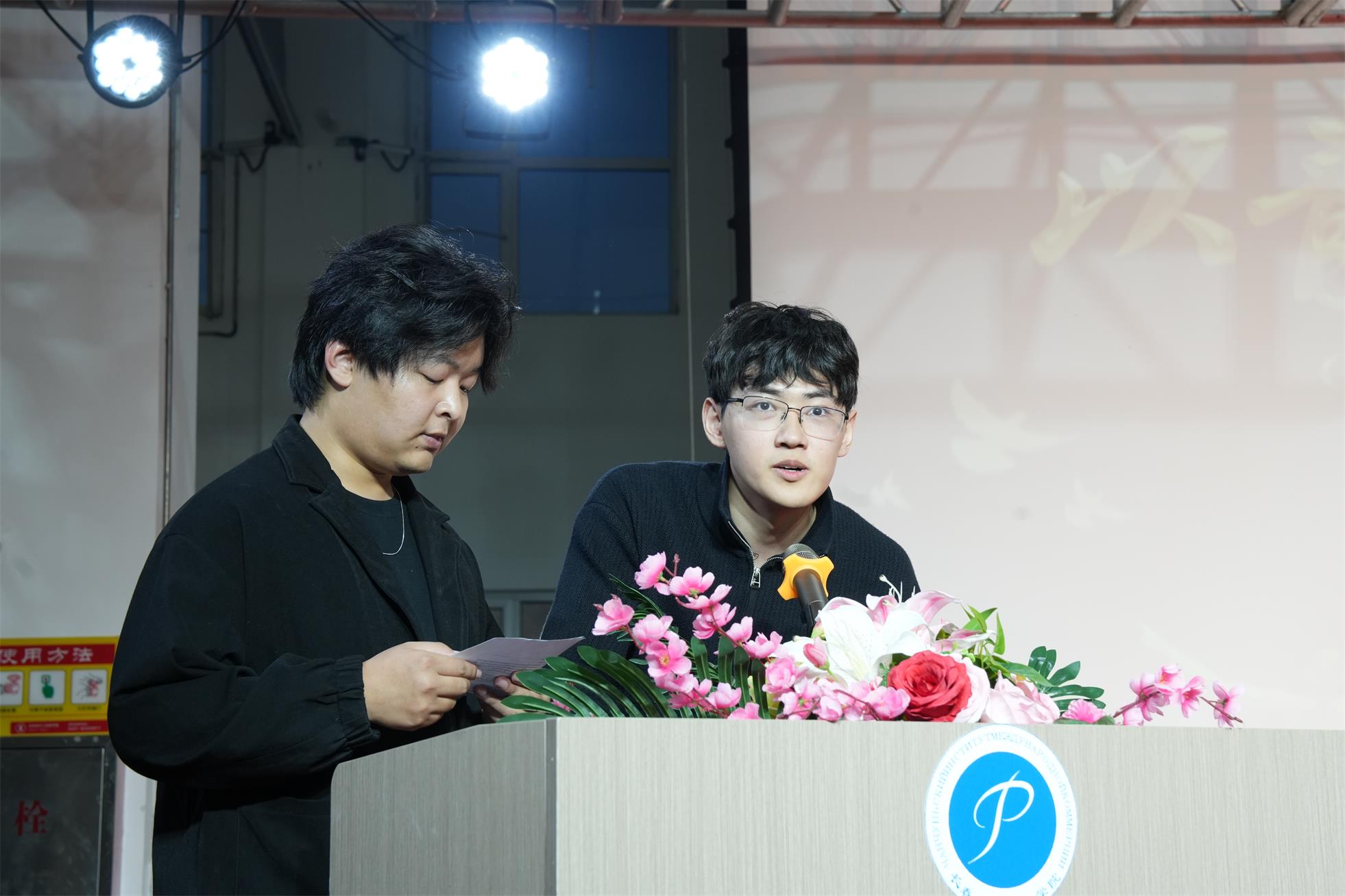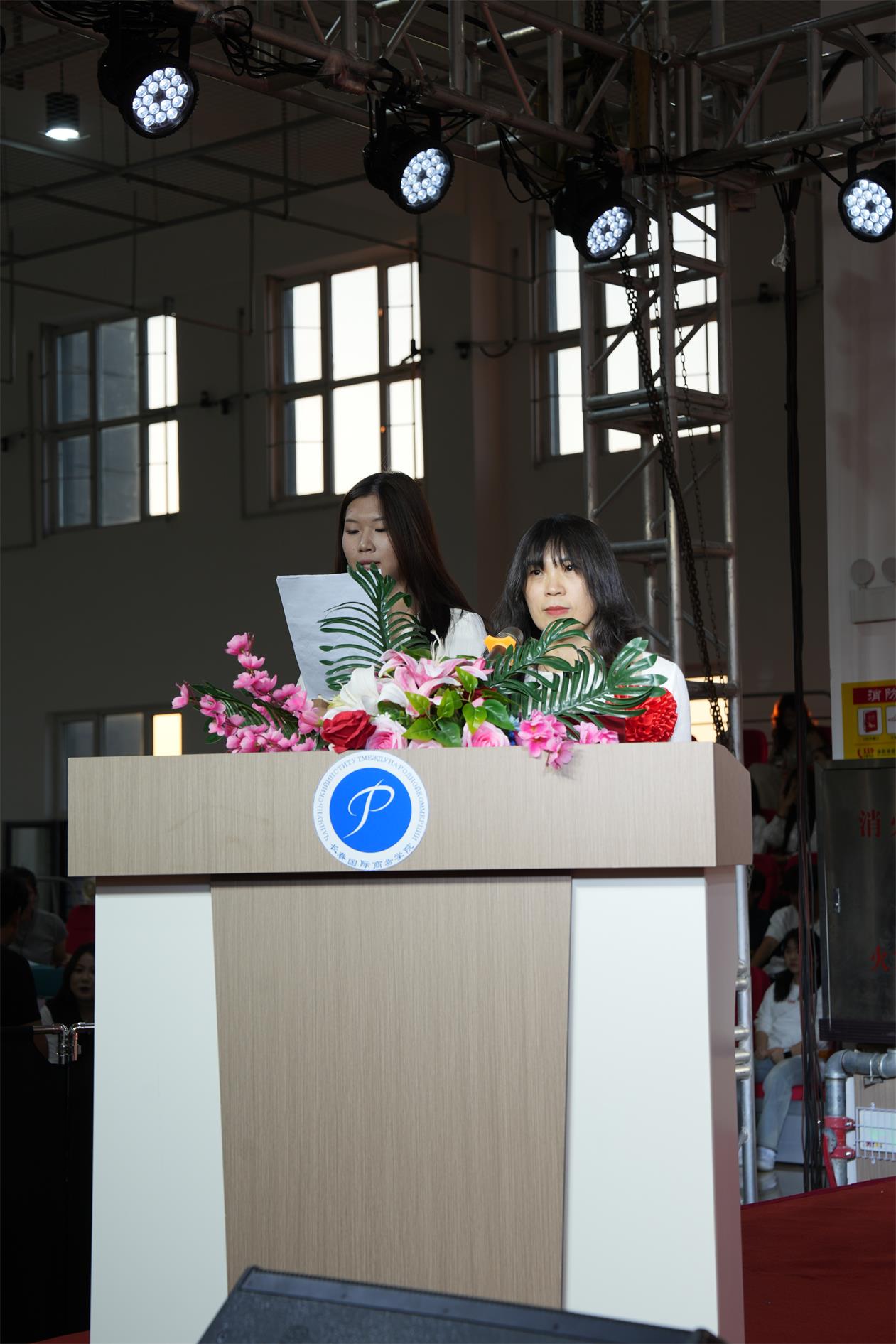 教师代表吴双老师(俄语翻译:张琪同学)、老生代表张敬博、新生代表马晶晶分别上台发言。
