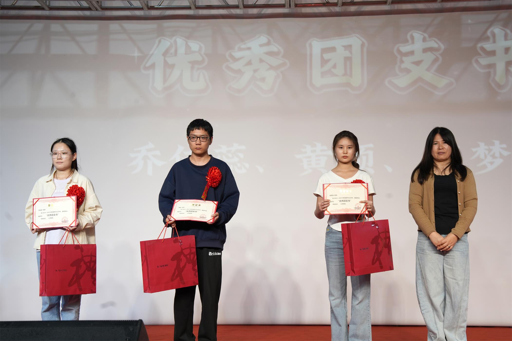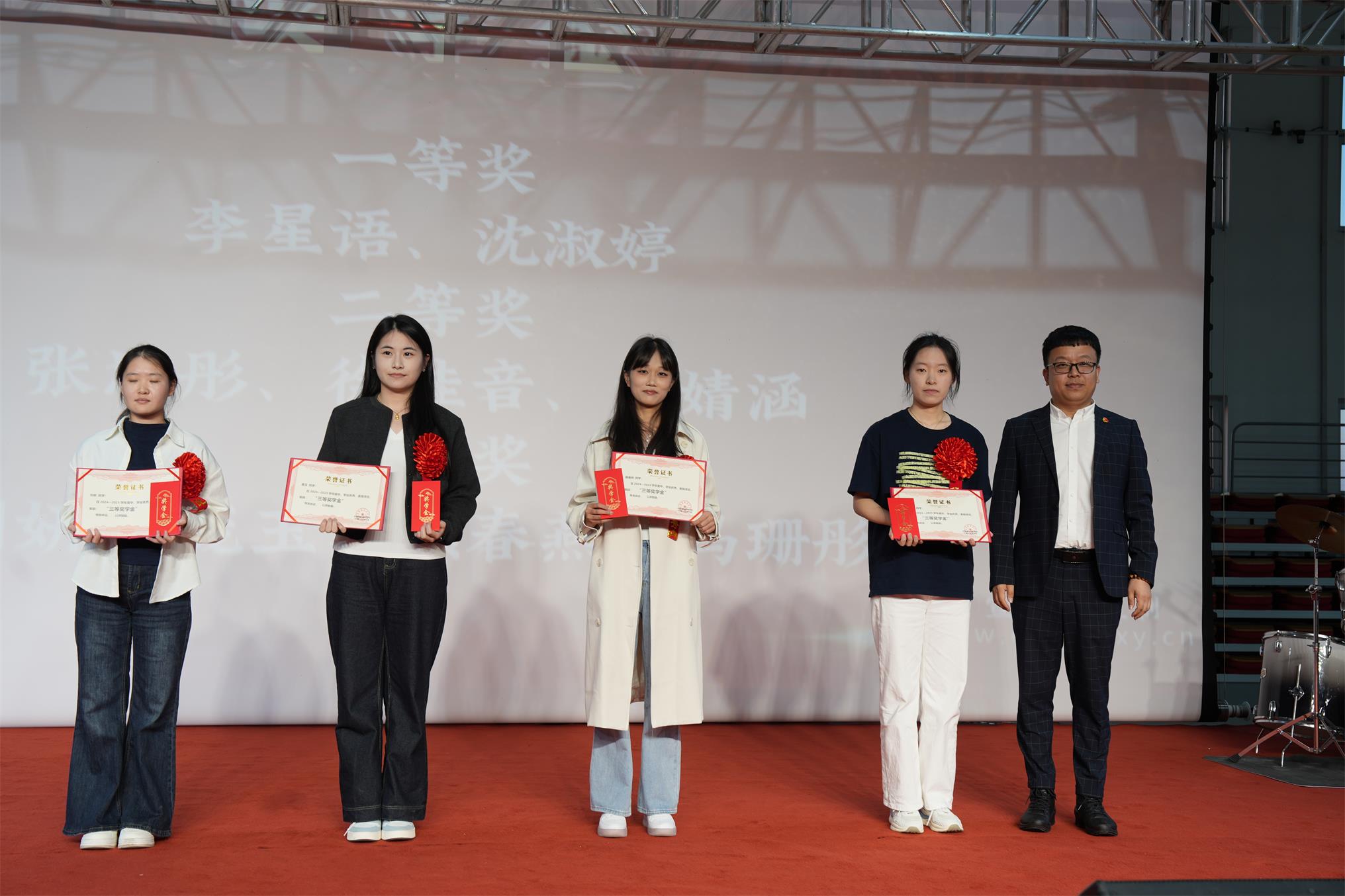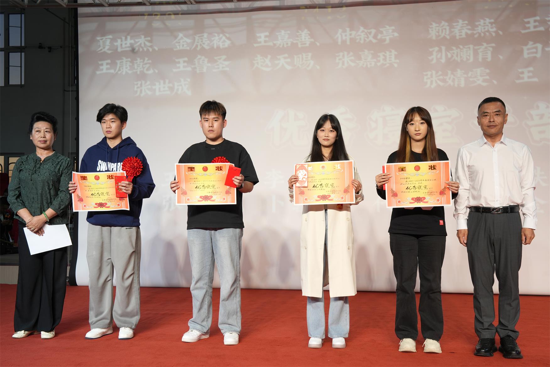 学院各位领导分别对 优 秀 教师、先进工作者、三好学生、 优 秀 学生干部、 优 秀 寝室干部、 优 秀 团支书、特殊贡献奖、 优 秀 军训教官、 优 秀 寝室、军训 优 秀 标兵、军训 优 秀 内务标兵等获奖师生颁发证书、奖金及礼品。