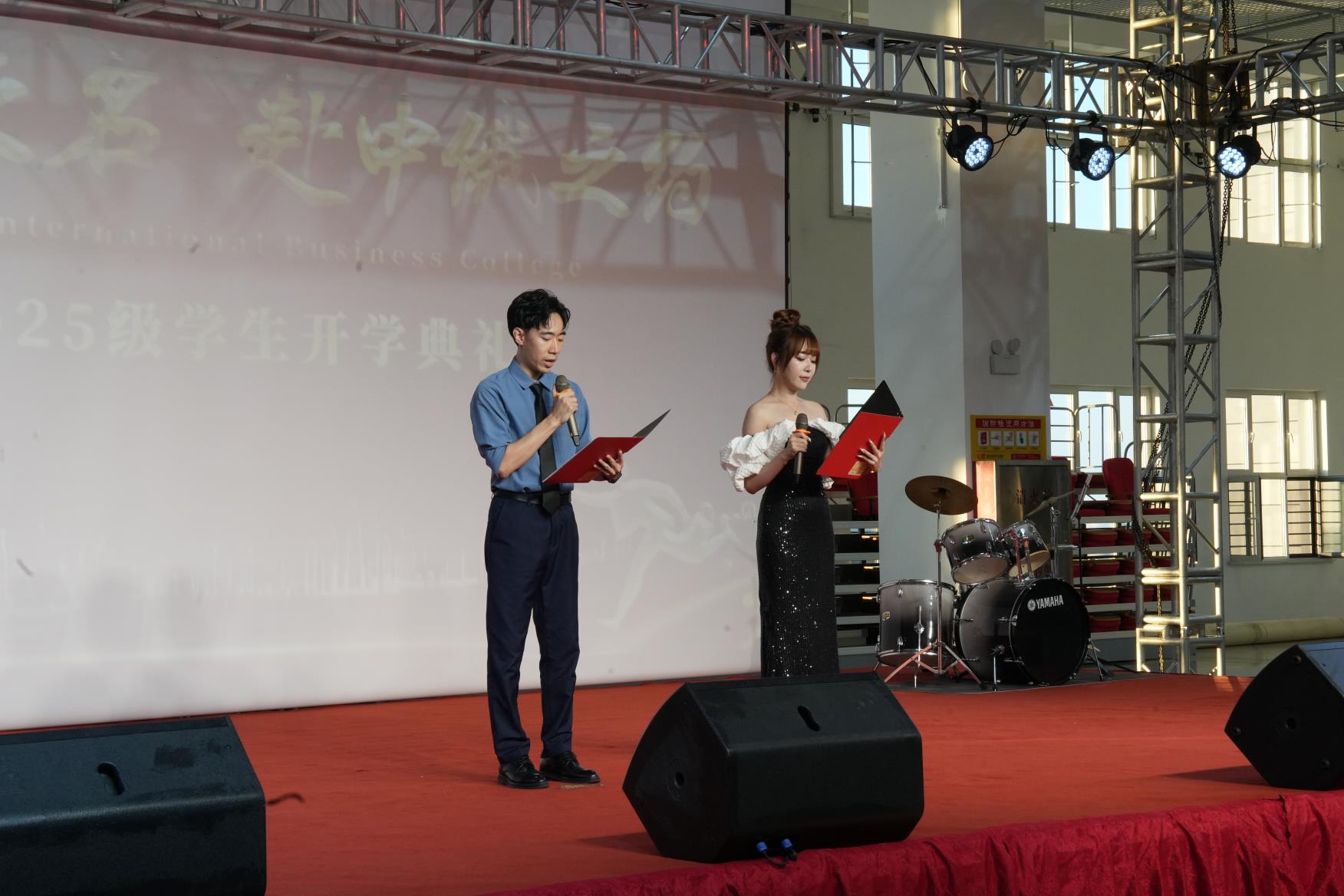 典礼在雄壮的中国国歌声中拉开帷幕。全场师生肃立,歌声嘹亮,彰显了学院师生们深厚的家国情怀。